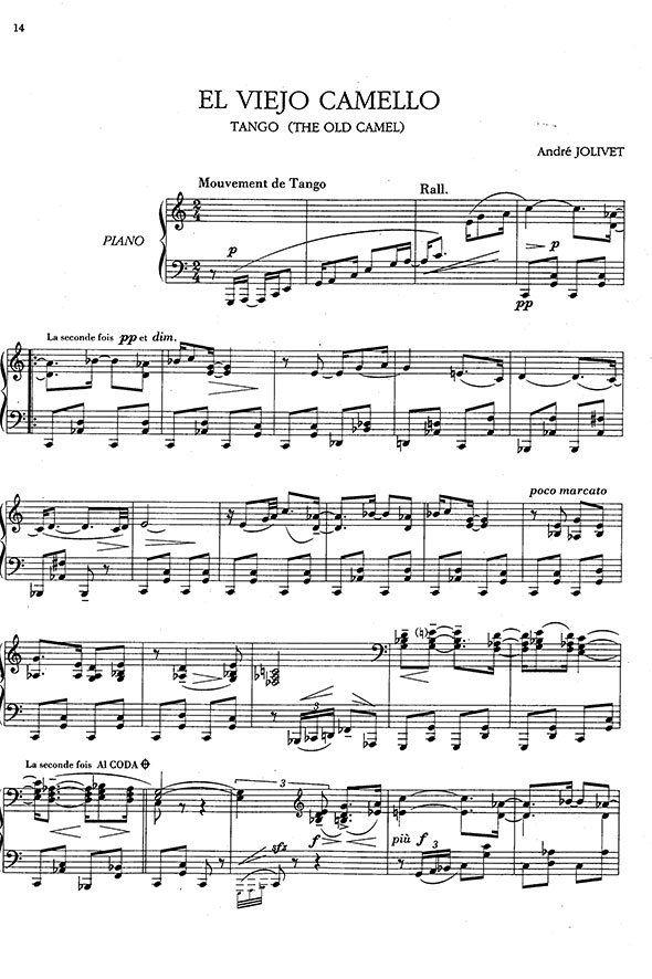 Ce tango paraît le plus ironique de la série, plus proche du jazz que du tango sous ses allures de cake-walk au fort goût debussyste. Le titre de la pièce autorise ici une lecture figuraliste : ainsi, le rythme même de la danse choisie ainsi que les fréquentes syncopes, l’interruption sporadique de la pulsation énoncée à la main gauche par une petite formule ascendante sur triolet, enfin les brutaux changements de nuance nous évoquent la démarche accidentée et cahotante de ce « vieux chameau ». Le pittoresque ici présent est donc un pittoresque de second degré, de connivence avec l’auditeur, comme en témoigne l’ultime section de la pièce, où un thème fortissimo présenté sur une basse en quintes à vides évoquant un Orient majestueux, se trouve immédiatement tourné en dérision par l’arrivée d’accords successivement sforzando et piano, marquant le retour du « personnage » principal."